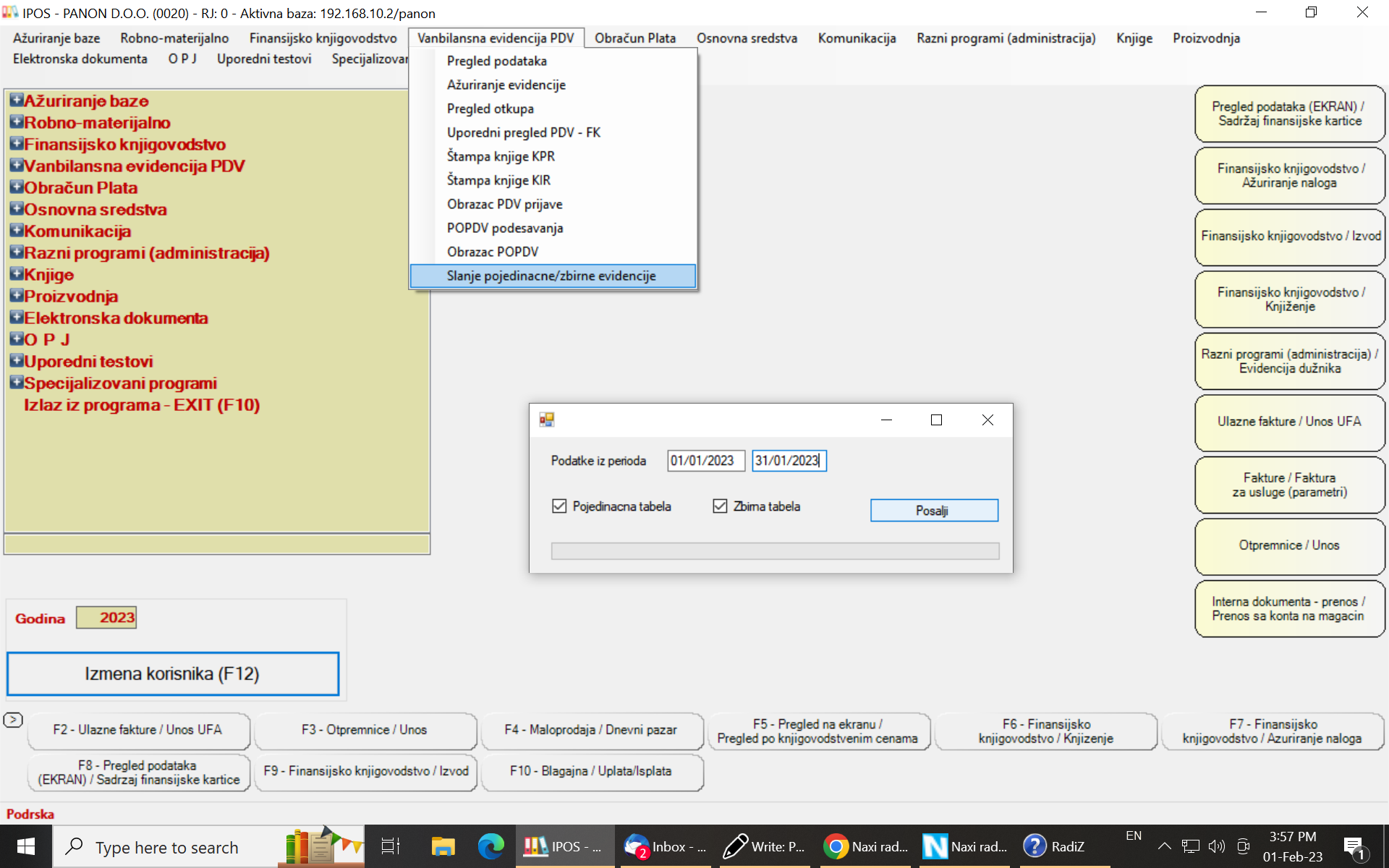 Slanje pojedinačne i zbirne evidencije